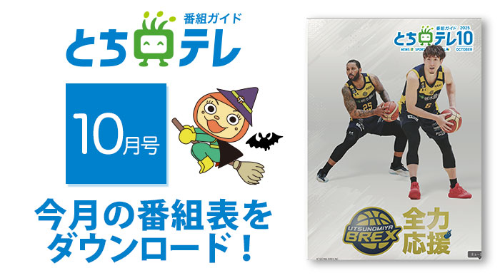 お知らせ・イベント情報一覧INFORMATION とちテレ番組ガイド10月号公開中! とちテレ番組ガイドをPDFで配信しています。 ダウンロードの上、是非ご活用ください。 ▲サイズ:約20MB お知らせ・イベント情報一覧へ