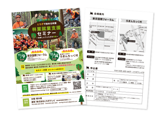 栃木県の林業への就業を考えている方を対象に東京と栃木2会場で林業就業支援セミナーを開催します。栃木での林業を体感できるセミナーにぜひお越しください。