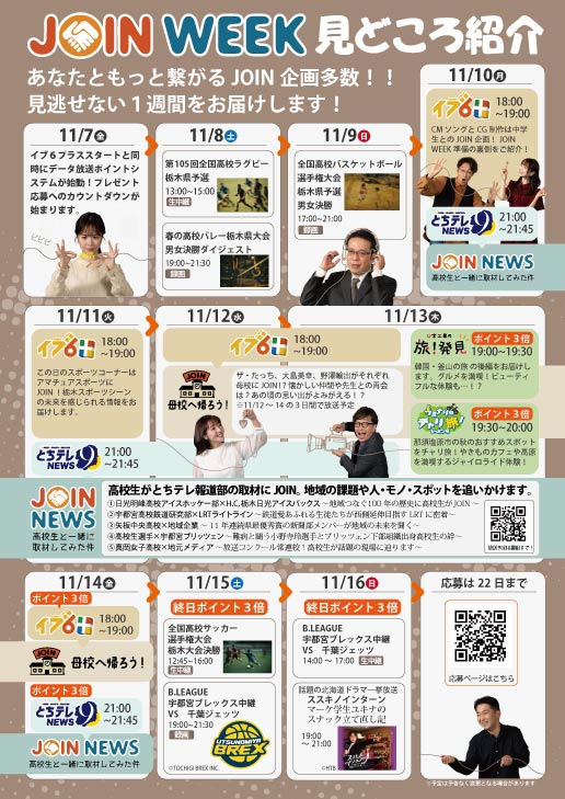 この秋、「イブ6プラス」と「とちテレNEWS9」がJOIN特別企画を展開!視聴者・地域・番組がひとつにつながる特別な放送をお届けします。
