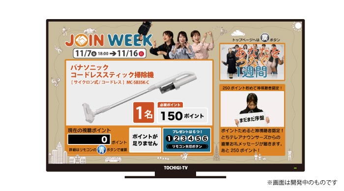 JOIN WEEK期間中、とちテレを観て“視聴ポイント”をためると、豪華プレゼントが当たるチャンス!