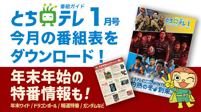 お知らせ・イベント情報一覧INFORMATION とちテレ番組ガイド1月号公開中! とちテレ番組ガイドをPDFで配信しています。 ダウンロードの上、是非ご活用ください。 ▲サイズ:約11MB お知らせ・イベント情報一覧へ